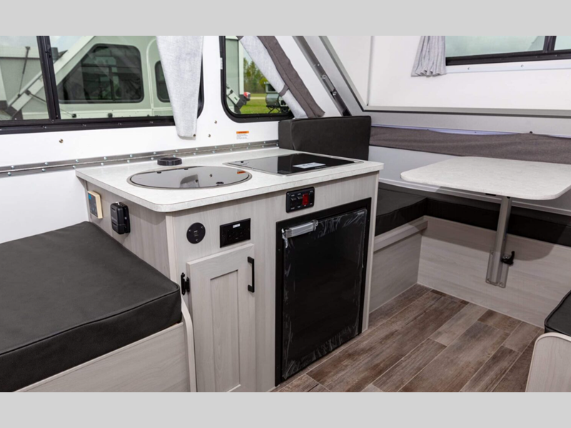 Sleeps 3 Length 15 ft Ext Width 6 ft 6 in Ext Height 5 ft 4 in Hitch Weight 160 lbs GVWR 3000 lbs Dry Weight 1725 lbs Fresh Water Capacity 11 gals Tire Size 14" Furnace BTU 18000 btu Refrigerator Type 12V Refrigerator Size 3.2 cu ft Cooktop Burners 2 Axle Count 1 -