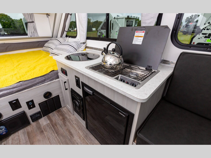 Sleeps 3 Length 15 ft Ext Width 6 ft 6 in Ext Height 5 ft 4 in Hitch Weight 160 lbs GVWR 3000 lbs Dry Weight 1810 lbs Fresh Water Capacity 11 gals Tire Size 14" Furnace BTU 18000 btu Available Beds Two Twin Beds Refrigerator Type 12V Refrigerator Size 3.2 cu ft Cooktop Burners 2 Axle Count 1 Similar Floorplans