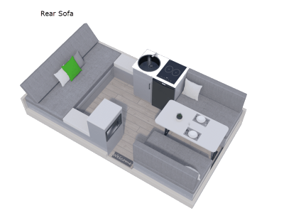 Camping has never been easier than in this A-frame camper. Once you arrive at your destination, grab your gear from the two exterior baggage doors, then head inside to make lunch on the two-burner stove top. The sofa bed can convert to a 60" x 76" bed, and the dinette converts to a 46" x 76" bed for comfortable sleeping space at night. You will also enjoy LED interior lights and electrical outlets to keep you charged up, and there is plenty of storage for your camp gear. And an optional front and/or rear hard dormer can be added if you want additional standing space!