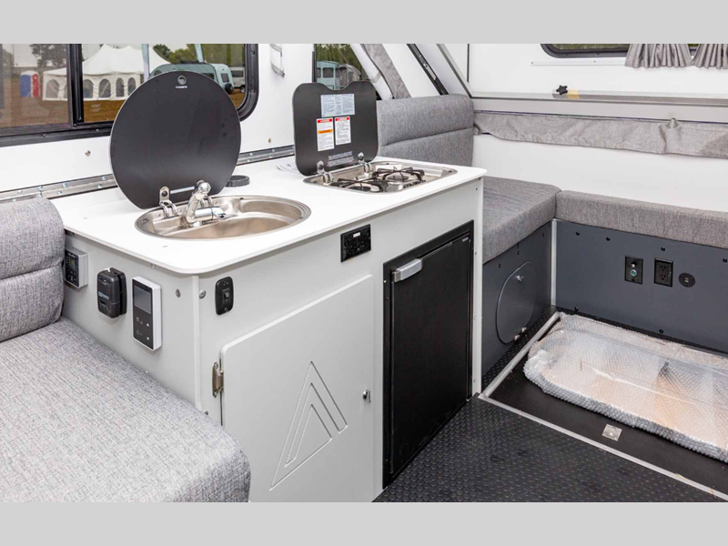 The Evolution by Aliner is the next generation A-frame camper with comfortable spaces and high-end materials, all in a package that can easily be parked in your garage.