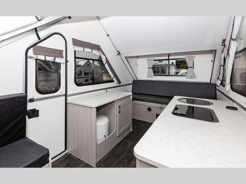 Aliner Expedition A-frame Rear Sofa highlights: Rear Sofa Front Dinette Cassette ... more about Expedition Rear Sofa