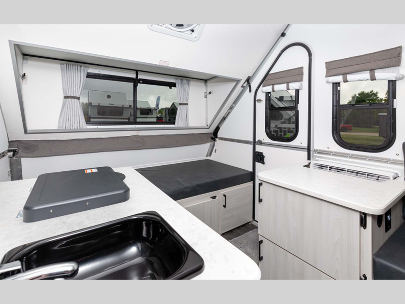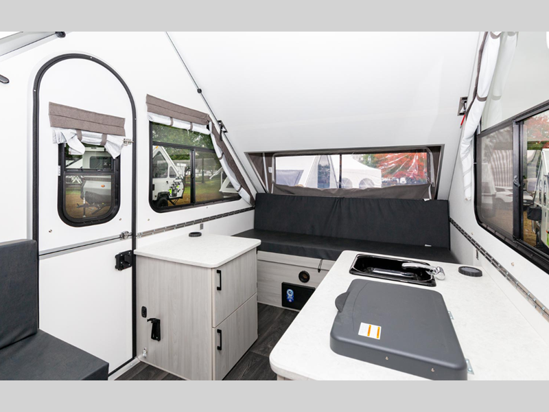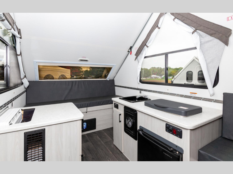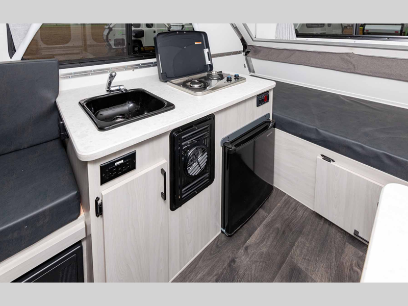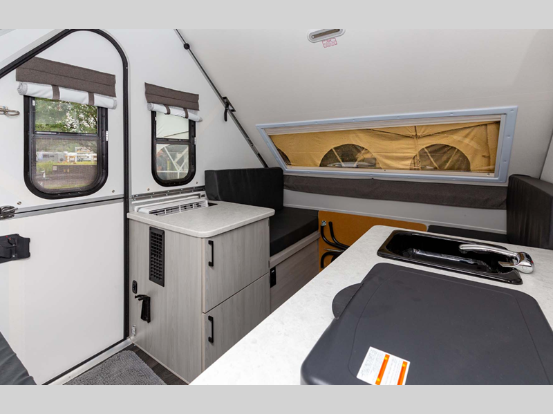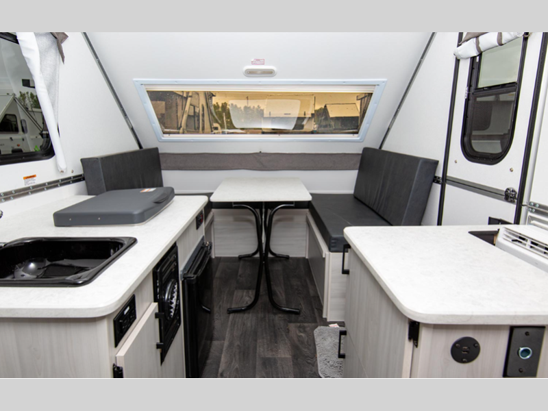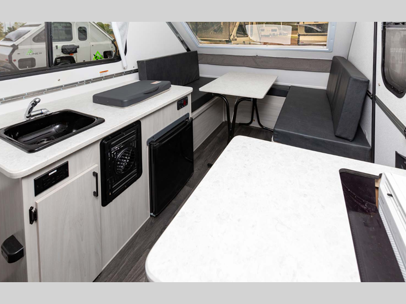 Aliner Ranger A-frame camper 10 Rear Dinette highlights: Rear Dinette Storage ... more about Ranger 10 Rear Dinette