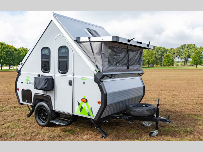 Whatever reason you enjoy camping, this Aliner Scout Lite A-frame camper offers a lightweight tow and inside sleeping space to keep you above the ground!