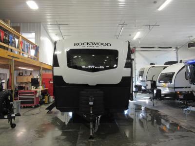 Each Rockwood Mini Lite travel trailer by Forest River is constructed with a fully laminated one-piece walkable roof, sleek frameless windows, and a six-sided full aluminum frame for strength and durability. The 12V thermostatically controlled heated tanks, plus radiant foil in the underbelly will allow you to camp well into the colder months, and the 200W roof solar panel will be perfect for a little off-gridding. Each model includes solid surface kitchen countertops, hidden hinge cabinet doors, roller shades, plus many more interior features. Having an AIR 360+ omnidirectional antenna with WiFi prep on board gives you the option to get some work done if it's needed, and the power tongue jack provides hassle-free set up, so you can enjoy more time relaxing!